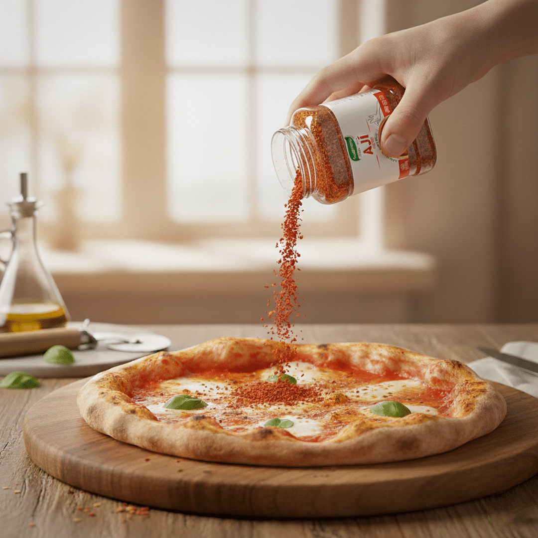 El ají pizzero deshidratado aporta un picor suave y un aroma característico, ideal para pizzas, pastas, salsas y adobos. Su textura ligera permite dosificarlo fácilmente, realzando sabores y añadiendo un toque auténtico y equilibrado a todo tipo de preparaciones culinarias.