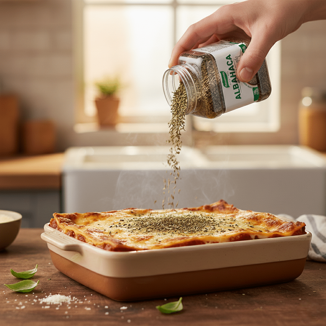 Albahaca deshidrata muy  aromática, realza el sabor de tus platos. Ideal para pastas, salsas y carnes, aporta frescura y aroma mediterráneo.