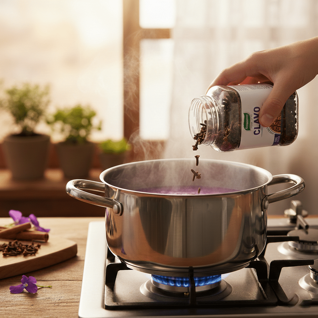 El clavo de olor es una especia aromática de sabor cálido e intenso, ideal para postres, infusiones, carnes y salsas. Su aroma distintivo realza preparaciones dulces y saladas, aportando profundidad y un toque exótico. Versátil y tradicional, esencial en la cocina.