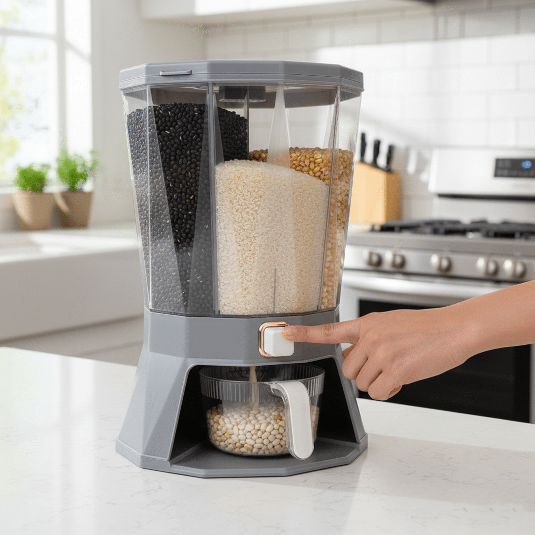 Transforma tu cocina y simplifica tu vida con nuestro dispensador de granos, la solución ideal para almacenar y servir tus alimentos a granel de forma práctica e higiénica. Este dispensador no solo optimiza el espacio en tu despensa, sino que también te permite acceder a tus cereales, arroz, granos, semillas o frutos secos favoritos con un simple giro.