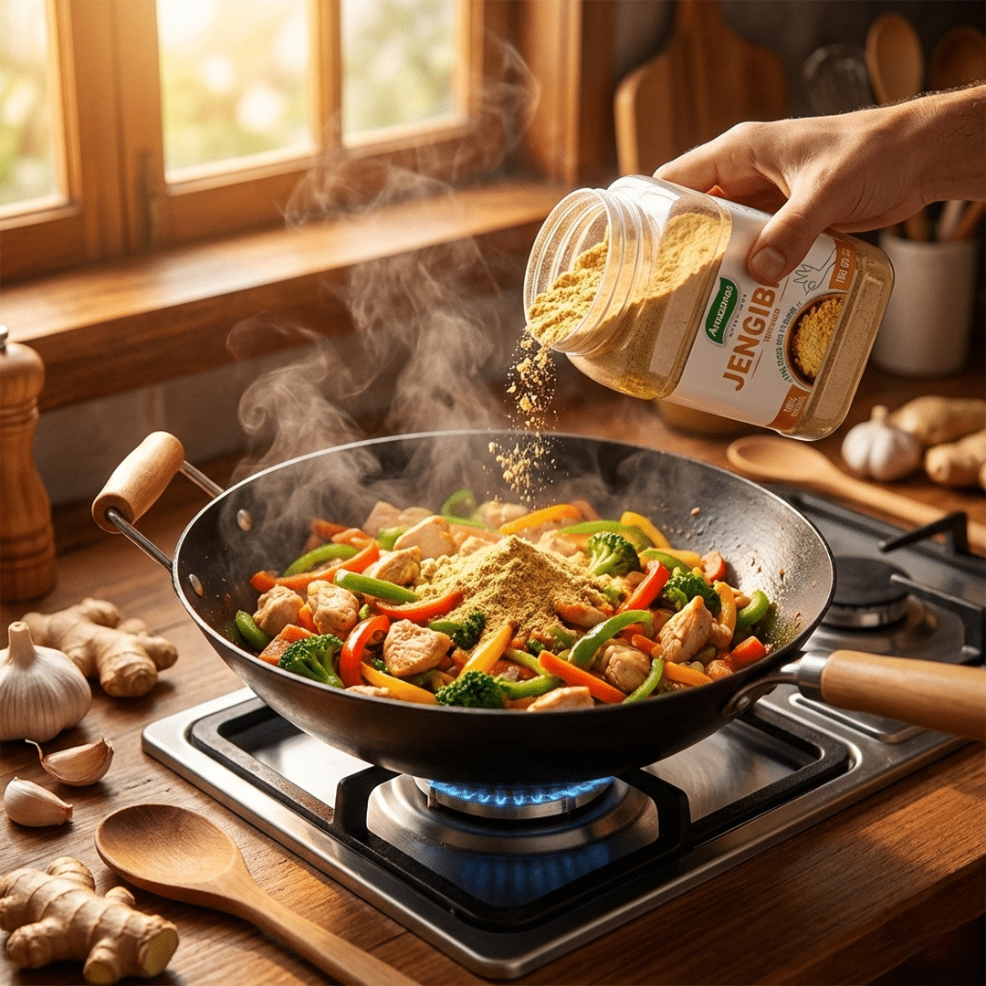 Jengibre en polvo 100% natural, aroma picante y fresco. Perfecto para infusiones, repostería, salsas y guisos. Añade sabor intenso y un toque saludable a tus recetas.