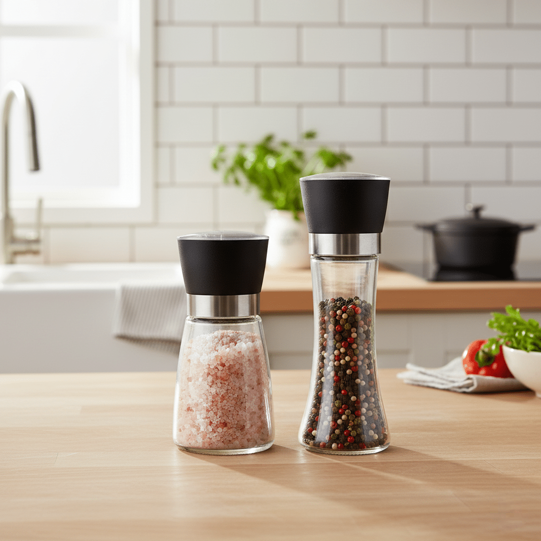 Aporta frescura y sabor recién molido a tus platos con nuestro elegante molinillo de vidrio transparente de 160 ml. Este práctico accesorio de cocina es perfecto para especias enteras como sal marina, pimienta negra, chiles secos o hierbas aromáticas, liberando su máximo aroma y sabor al instante. Compacto, fácil de rellenar y limpiar, este molinillo es un complemento indispensable en tu cocina y en tu mesa.