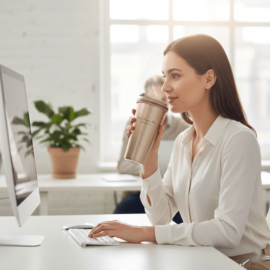 Este vaso ofrece una durabilidad excepcional que mantiene tus líquidos calientes por horas y fríos por mucho más tiempo, sin condensación externa. Su diseño elegante y ergonómico lo hace fácil de sostener y transportar, adaptándose perfectamente a la mayoría de los portavasos de coche. Además, es una alternativa sostenible a los vasos desechables, ayudándote a cuidar el planeta con cada uso.
